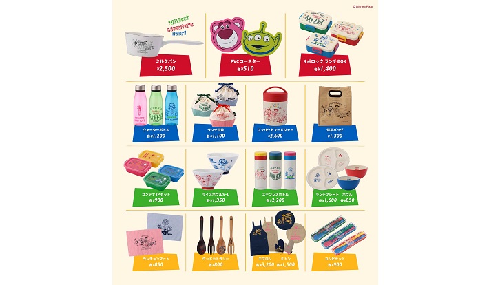 お出かけに欠かせない「コンパクトフードジャー」や、「保冷バッグ」、「ステンレスボトル」から、食卓が楽しくなりそうな「ライスボウル」や「ランチプレート」、「ランチョンマット」や「エプロン」まで幅広く展開し、「ロッツォ・ハグベア」や「グリーンアーミーメン」などのレアキャラクターも登場するので、『トイ・ストーリー』ファンはもちろん、初めて見る人も楽しめるはず。