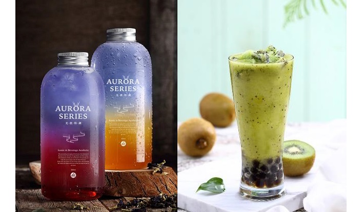 このほか、濃厚で香り高いアッサムミルクティーにココアチップをトッピングし、盆栽に見立てた「盆栽ミルクティー」や、タピオカ、ナタデココ、3色ゼリーを加えたアッサム茶「THE ALLEY 三食感ミルクティー」、台湾で人気の蝶豆花茶(チョウマメ)に、ブドウやリンゴの味わいを加え、鮮やかな見た目も楽しめる「オーロラドリンクシリーズ オーロラ/日の出」、キウイを丸ごとスムージーに仕上げた「翡翠レモングリーンティー」など、ユニークなメニューが勢揃い。