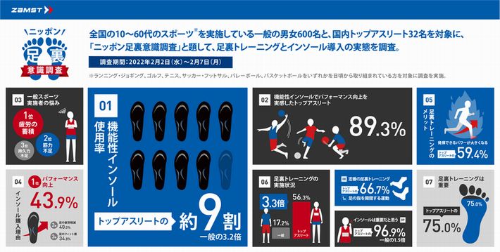 (※1)2022年3月発表「ニッポン足裏意識調査」 (特設サイトURL:https://www.zamst-ashiura.jp/)