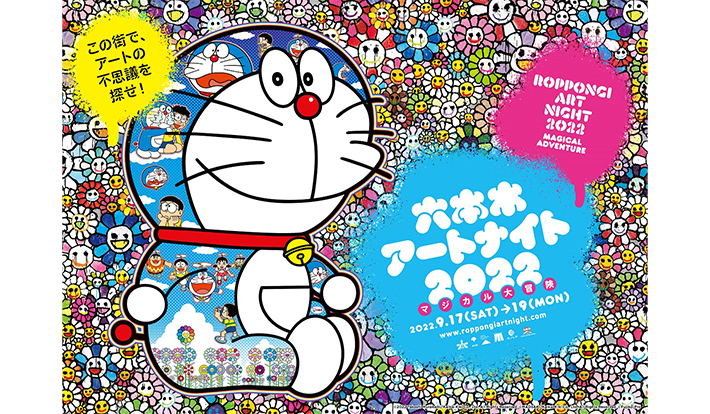 また、今回の六本⽊アートナイトで村上は、アーティストとしてだけではなく、プロデューサーとして、自身がキュレーションしたアーティスト、Mr.(ミスター)やタカノ綾、MADSAKI(マサキ)、村田森、READYMADE(レディメイド)などを手掛ける細川雄太らとともに、「ドラえもん」をモチーフにした新作に挑む。それぞれの作品は、六本⽊ヒルズアリーナ、東京ミッドタウン、国⽴新美術館等に展示され、六本⽊の街に出現する多彩なドラえもんのバルーン作品が醸し出す非日常な空気感は、まさにマジカルな世界になるだろう。