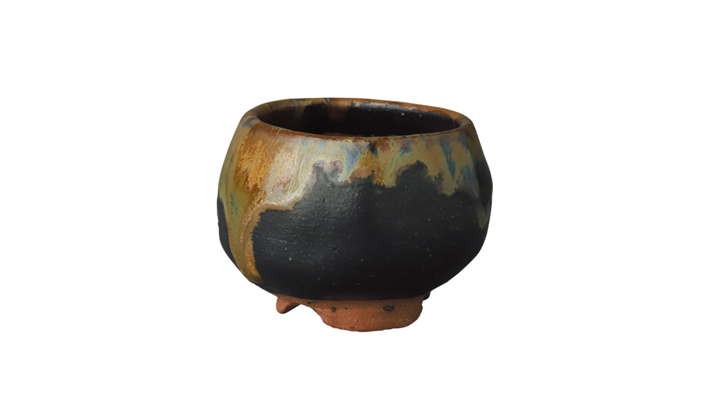 MAMES 蕾口漆黒織部掛分豆木鉢 B