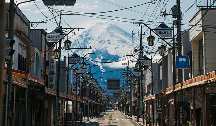 緑豊かな景観と富士山から流れ落ちる清涼な水の恵みによって、1000年以上続く織物の町として栄えてきた富士吉田市。現在では、クリエイターやアーティストとのコラボレーションで、新たな織物の価値創造に挑んだ機屋展示・アート展の開催など、伝統を繋ぎ革新を続ける街としても注目を集めている。