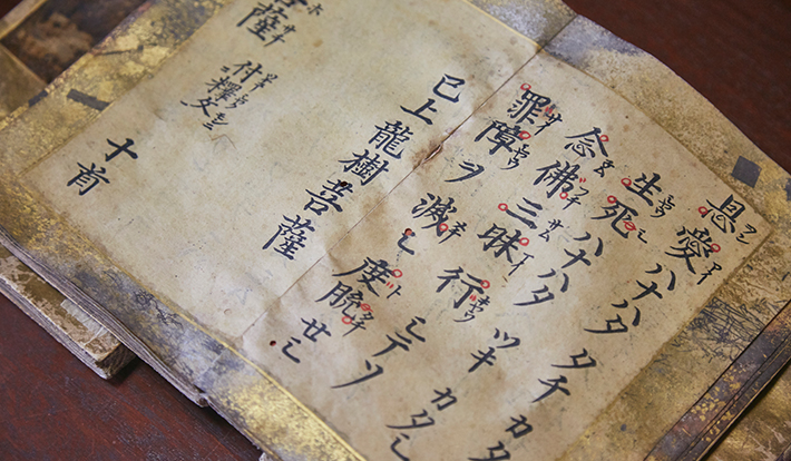 左)柳宗悦が感銘を受けたという、世界最古の背綴本「色紙和讃」