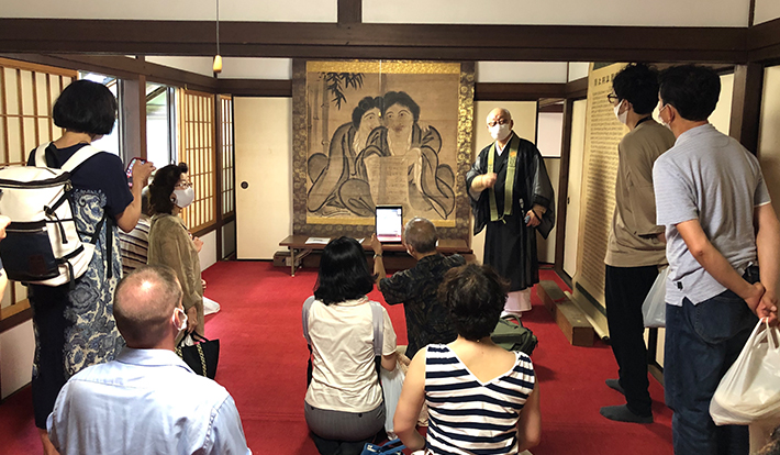 右)僧侶の解説による「虫干法会」ツアー開催の様子(2021年)