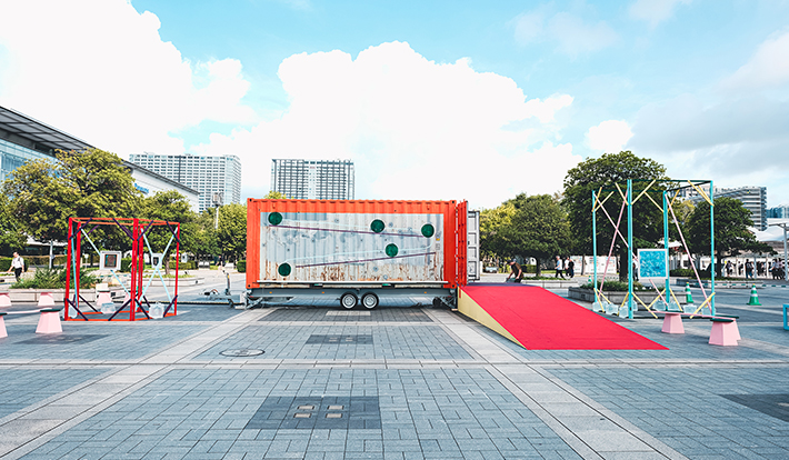 展覧会舞台の中核には、臨海副都心の風景の象徴であり現代人の営みを支えるコンテナが出現。新進の現代アート作家たちがそのコンテナを使い、それぞれ独自の視点と手法で“Biotope Circles”(生きるものたちの息づかいが聴こえる場所)を作り上げている。