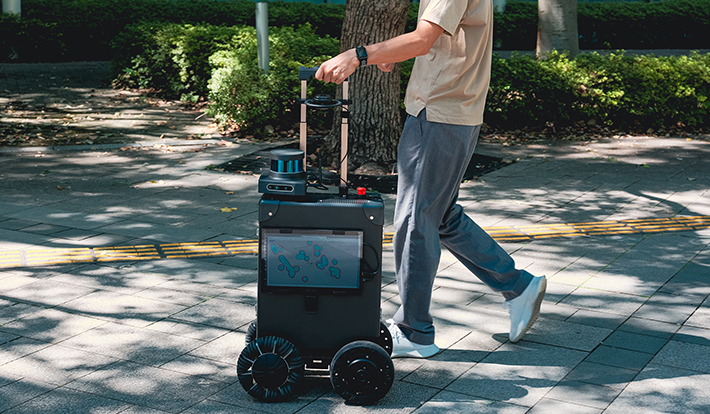 さらに興味深かったのは、日本科学未来館などが開発を進める、視覚障害者を目的地までナビゲーションするスーツケース型のロボット『AIスーツケース』(写真:右)。行きたい場所を指示すると、 スーツケースが自動で動き、道案内