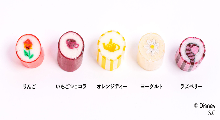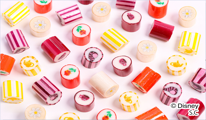「ふしぎの国のアリス」の作中でも代表的なシーンである「ティーパーティー」がテーマとなっており、ティーポットやティーカップ、チシャ猫の特徴的なしっぽなど映画の世界を表現したキャンディで、ファンの心を鷲掴みにするようなデザインや特徴的なカラーもポイント。