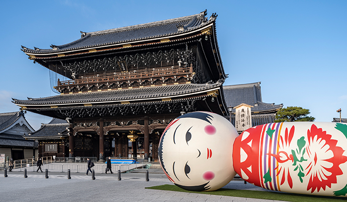 左)東本願寺御影堂門前、Yottaによる作品《花子》が登場