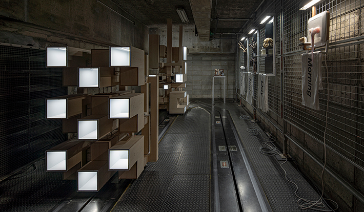 宇留野圭の個展では、「CLEAN ROOM 清潔で空虚なある部屋の物語」と題し、「MYNAVI ART SQUARE(MASQ)」を「部屋」 のメタファーを用いて捉え直し、空間としての機能を分解、読み直すことからはじまる。