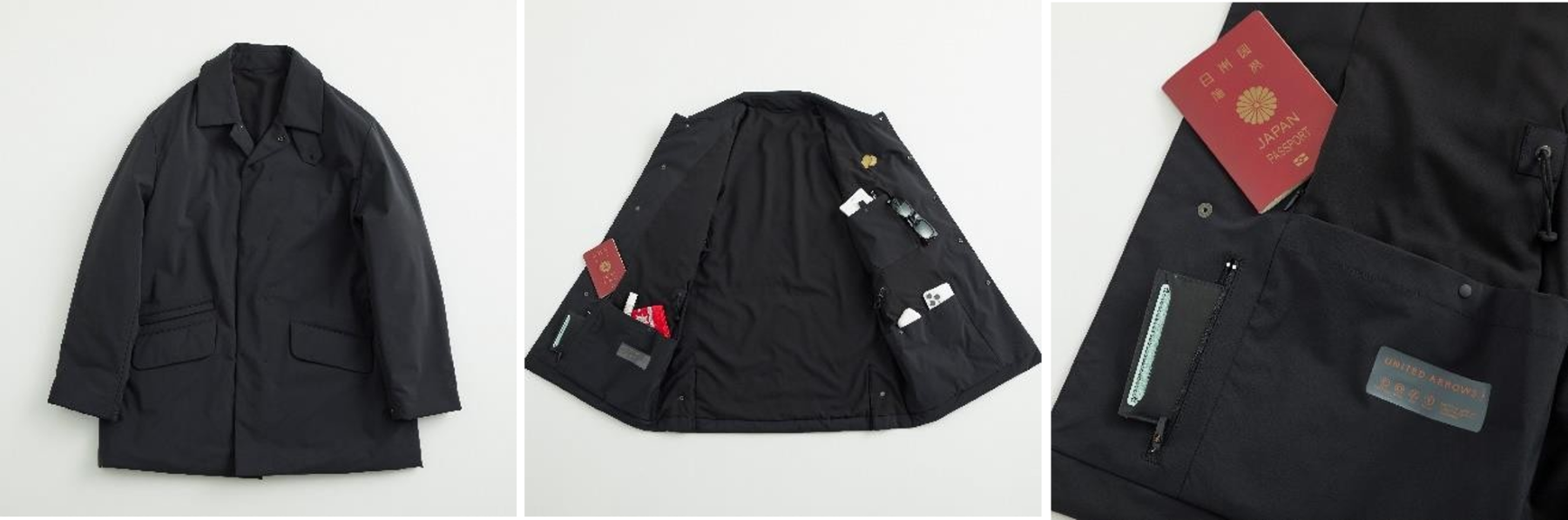 ・特長:ショート丈の中綿入りバルカラーコート。表地には程良いハリ感としなやかでしっ とりとした風合いが特徴のリップストップ素材を使用している。ジャケット同様、内側の各所に多くのポケットを配置することで収納力を高めているのが特徴だ。スラントポケットとチェン ジポケットをアクセントにしつつ、他アイテムとのコーディネートがしやすいよう極力シ ンプルな佇まいを表現。デイリーにもビジネストリップにも快適に使えるアウターに仕上げている。