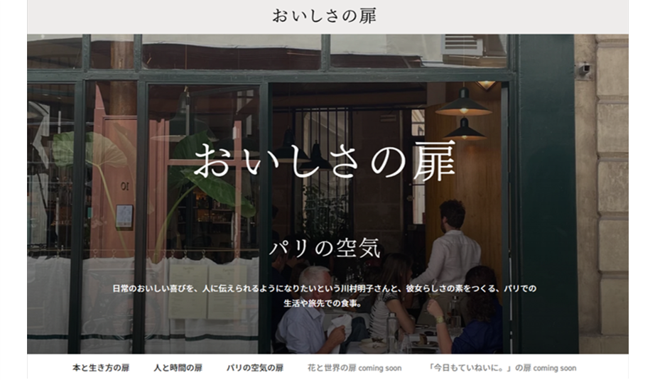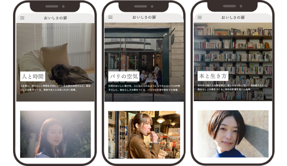 「おいしさの扉」は“扉”と題したテーマに沿ったコンテンツによって構成されており、それぞれの扉のアンバサダーや編集チームが、真に“おいしい”と感じた食事について向き合い、様々なエピソードと共に紹介するWEBメディア(コンテンツは順次拡充予定)。