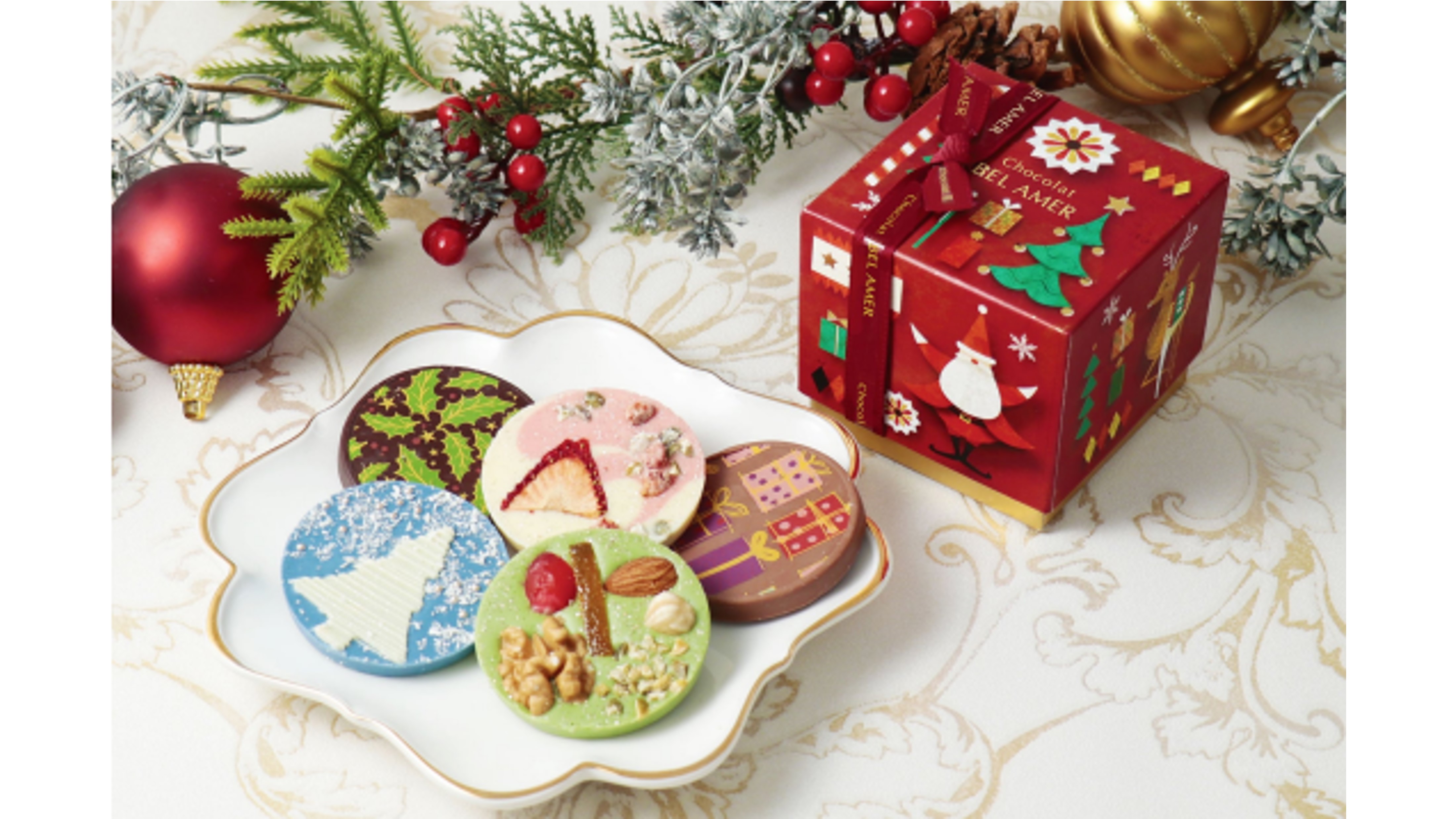 ショコラ専⾨店「ベルアメール」は、クリスマスにピッタリなモチーフや季節の素材を使用している、期間限定のノエルコレクションを11月8日より販売している。クリスマスデザインの「ノエルパレショコラ 5枚」、16種の味わいが楽しめる「ノエルミニマンディアン 16枚」、異なる⾷感が楽しめる「サパン ド ショコラ」などがセットになっており、クリスマスを感じること間違いなしだ。また、12月22日~12月25日は当日販売のクリスマスケーキも数量限定で販売中だ。