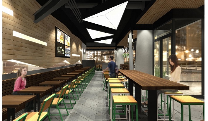 店舗はベイエリアの雰囲気にマッチするよう、大きな船をイメージしてデザインされた。