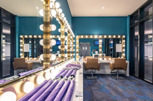 ーフにしたユニークな内装のギフトショップで、店内にはインスパイアで実際に開催したコンサートのライブ映像や、番組進行表を展示してあることで、アーティストの楽屋にあるメイクルームを再現しています。フォトエリアではまるで憧れのアーティストの楽屋に入ったかのような雰囲気を体感いただくことができる。