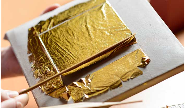 金沢は、湧き水でイモを洗った際に砂金が見つかったという伝説から“金洗いの沢=金沢”と呼ばれるようになったとも言われ、現在では、国内の金箔生産シェア100%を誇る“金箔の街”としても知られている。