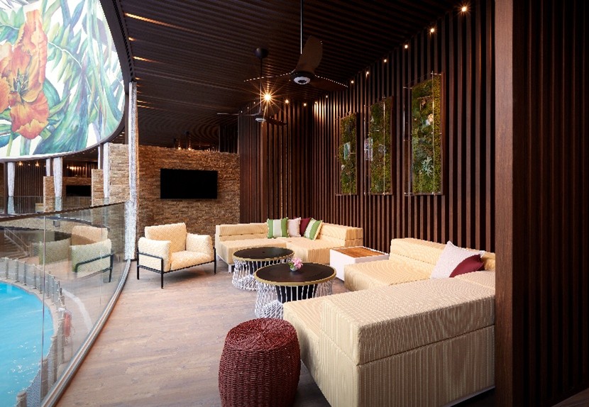 3階にあるスプラッシュベイ ルーフトップでは、自然光あふれる日光浴が楽しめる「タニングゾーン」や、ゆったり食事や休憩ができるプライベート空間「カバナ」を利用できる「カバナパッケージ」などをご用意している。