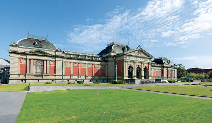メイン会場となる京都国立博物館 明治古都館は、「宮廷建築家」と呼ばれた片山東熊による設計で、外観はフランス・ルネサンス―バロック様式を特徴とし、正門から続く噴水やオーギュスト・ロダン《考える人》とともに京都の文化的景観を象徴している。