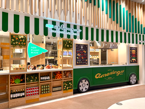 万博は『未来社会の実験場』というテーマであったことに加え、関西に本社を構える企業として、万博レストラン出店に挑戦することは植物性チーズ※3の可能性を試す絶好のチャンスだったという。日本中、世界中から多くの人が未知の体験を求めてやってくる場で、未来の当り前となるであろう新しい食を体験してもらいたい、そしてそれがきっと社会の流れを変える契機となるはず、そう信じて『QBB これもいいキッチン』を出店した。