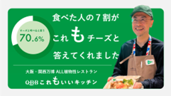 『QBB これもいいキッチン』は想像を超える反響を獲得。「動物性のチーズ不使用とは思えない濃厚さで、「おいしい」と言ってくださるお客様が非常に多かったです。レストランではお客様にアンケートを実施し、植物性チーズ使用メニューを食べた人の7割が“これもチーズ”と回答してくれました。さらに、85%以上の方が「植物性食品への印象が良くなった」と回答してくれています。 やはり商品を店頭に並べるだけだと、残念ながらまだまだ植物性チーズに魅力を感じてもらいにくい。でも、今回のようにメニューとして提供すれば段違いに関心を持ってもらえるし、喜んでもらえることを確認できました。」