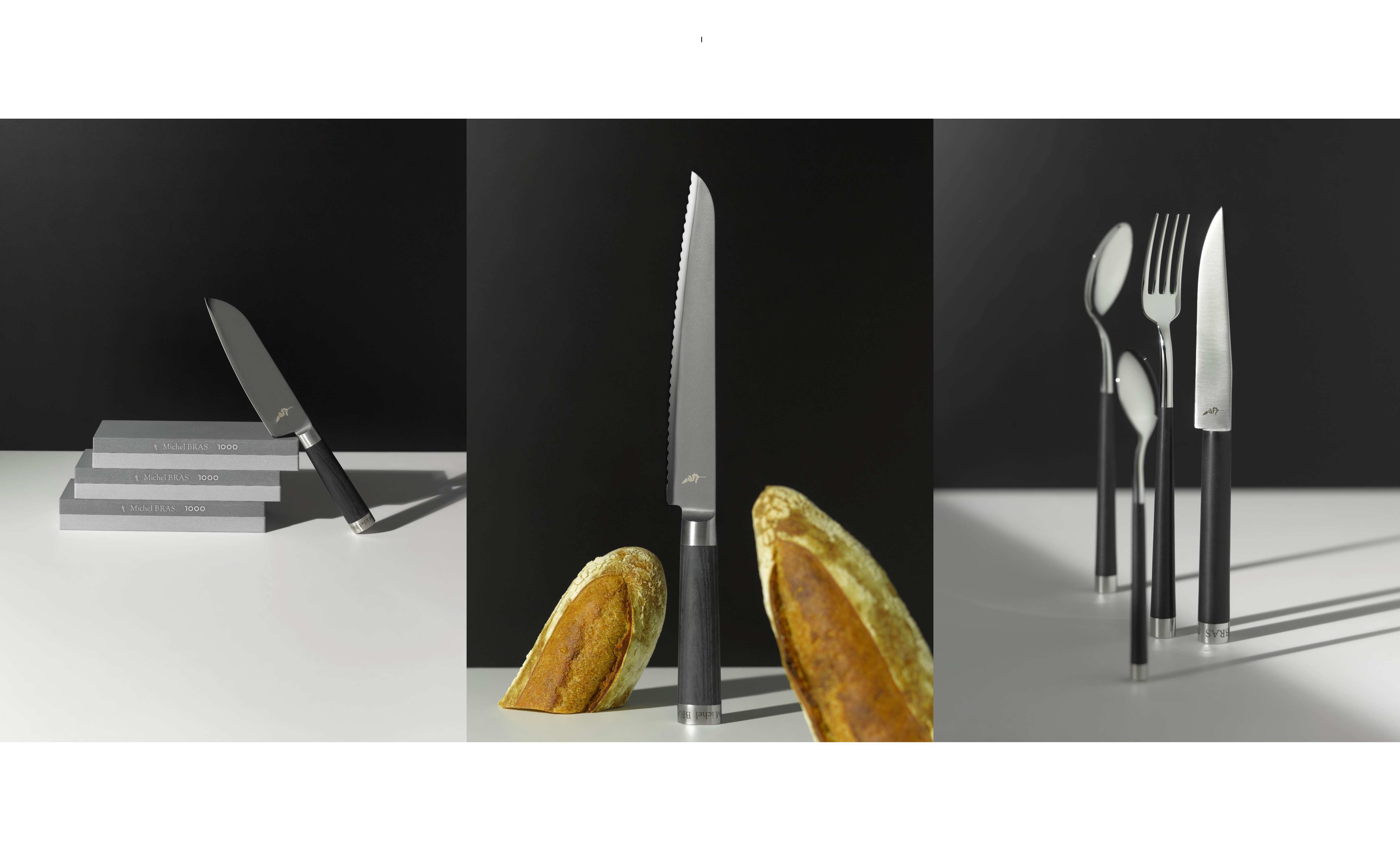 フランス料理界の巨匠ミシェル・ブラスの哲学を受け継ぐ「Michel BRAS」シリーズに、包丁・砥石・カトラリーの3アイテムが加わった。どれも“料理を創造的な行為へと昇華させる道具”として設計されており、素材感、精度、使い心地のすべてが妥協なくつくり込まれている点が特徴である。
