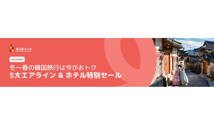 年末年始〜旧正月などの影響もあり、韓国旅行が高騰になりがちな時期になるが、混雑や値上がり前の『今』こそが、冬〜春の韓国旅行を確保するラストチャンスという韓国観光公社の思いのもとで、韓国の人気航空会社5社が集結し、特別運賃の提供に加え、韓国の人気ホテルが最大30%OFF、国際線航空券が最大6,000円OFFとなるクーポンを配布。さらに、台湾・香港・シンガポールなどの人気渡航先もセール対象となり、連休直前でもお得に予約できる年末年始の海外旅行を提供する。