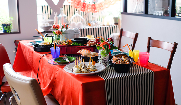 料理をハロウィン風に装飾するだけで、食卓が一段と盛り上がる。
