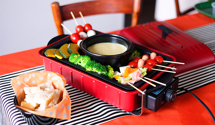 212キッチンストアでも大人気!レコルトのホームバーベキューを使ったチーズフォンデュや、かぼちゃをくり抜いて器にしたチーズカレーを、ロッジ(フライパン)にのせたり…