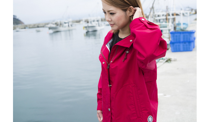 ユニセックスなデザインのシーパーカーは、ポンチョ型のデザインや撥水の機能はそのままに、女性用サイズとカラーリングで発売された。