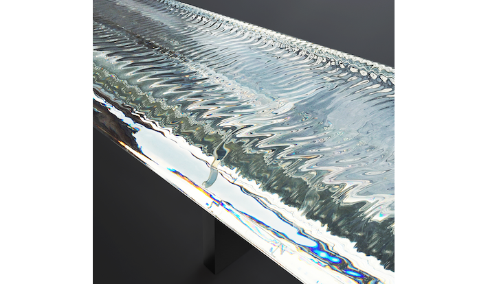本展では、代表作であるガラスのベンチ「Water Block」をはじめ、建築のプロジェクト「ガラスの茶室 ー 光庵」と「虹の教会 ー Rainbow Church」の映像を展示するほか、新作ではガラスの塊から生み出された「ガラスの時計」、Dom Pérignon Art Project で発表された「Prism」、虹の建築の模型などが展示される。