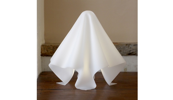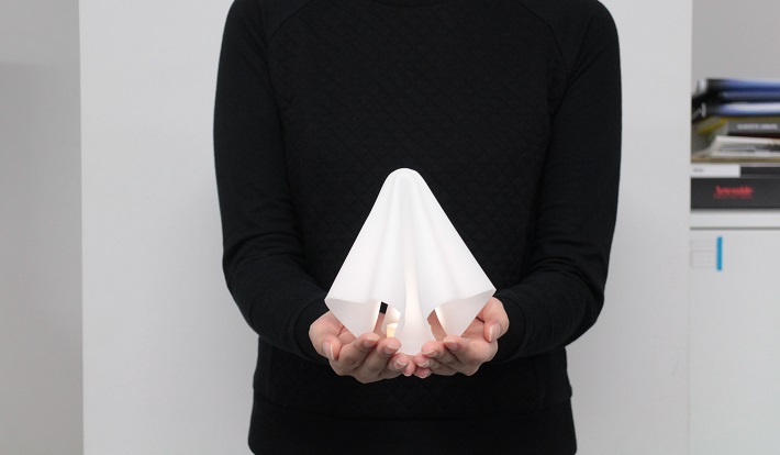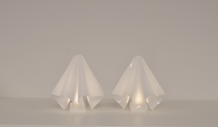 熱した1枚のアクリル板をひとつひとつ手作業でひだ加工することで、エレガントなドレープが生み出される。