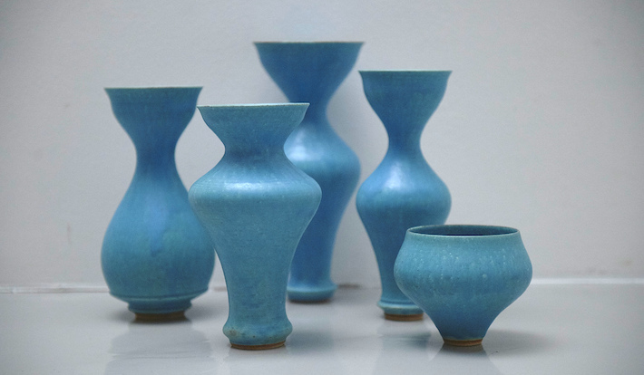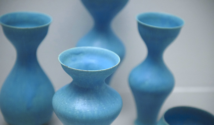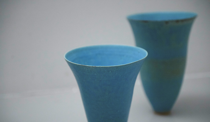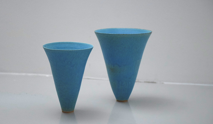 代名詞とも言える柔らかく鮮やかなターキッシュブルーの器は、まるで雲ひとつない空のようで、不思議な魅力を放つ。