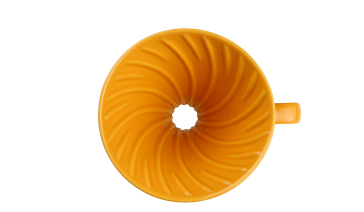 珈琲粉に注いだお湯が、 円錐の頂点に向かって流れる様に内側にスパイラル状のリブが施されていて、1~4杯までのコーヒーを抽出できる。