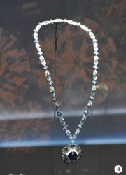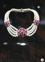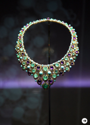 「125 年にわたるイタリアの至宝」と題されたこの回顧展では、ブランド史上もっとも重要とされる時代をたどりながら、ローマのシスティーナ通りに最初の店を開いた1884年から現在にいたるまでを、600点以上もの名品ジュエリー、ウォッチ、置き時計のほか、装飾美術などによって再訪できるというもの。展示品のなかには今回はじめて一般公開となる約100点の作品がふくまれている。そのなかには個人所有のものも多く展示され、モナコ公国のグレース王妃のネックレスなど、グリマルディ家が所有する3点も見ることができる。