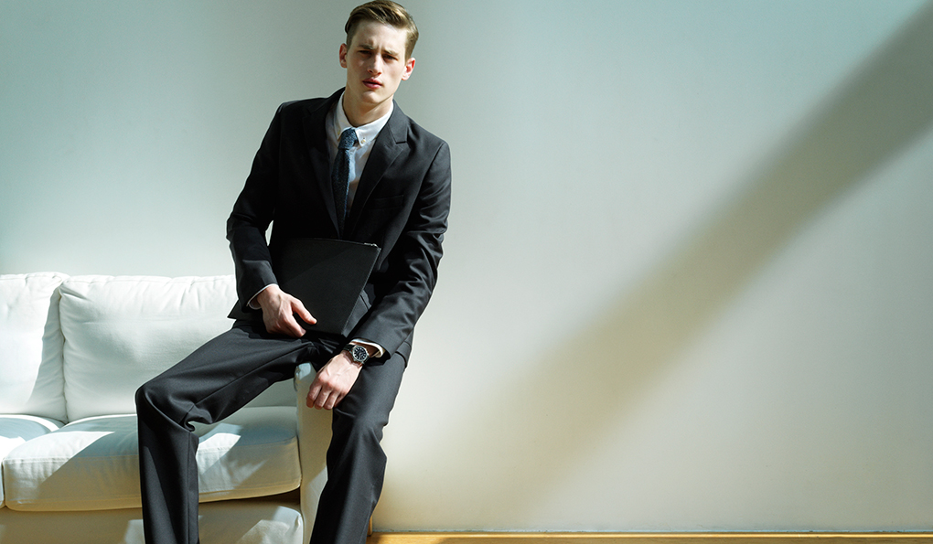 「1878年には馬と騎手が刻まれたクロノグラフ機能のついた懐中時計の生産を始めたというロンジン。そもそも競馬には、きちんと正装した貴族の娯楽としての伝統や文化があります。ロンジンにはドレス感や、ジェントルマンの品格があるブランドなので、服のコーディネートにも全体的にジェントルマンを意識しました。もう一点、今回、裏に掲げたテーマが“相反する要素を組み合わせる”ことだったので、洋服、時計、モデルの雰囲気、髪型……それぞれに意外性を持たせつつも総合的に見てカッコいい仕上がりを目指しました」。祐真朋樹のスタイリングを参考にしながら、時計とファッションを着せ替えて、自分にあったスタイルを探してみて欲しい。
