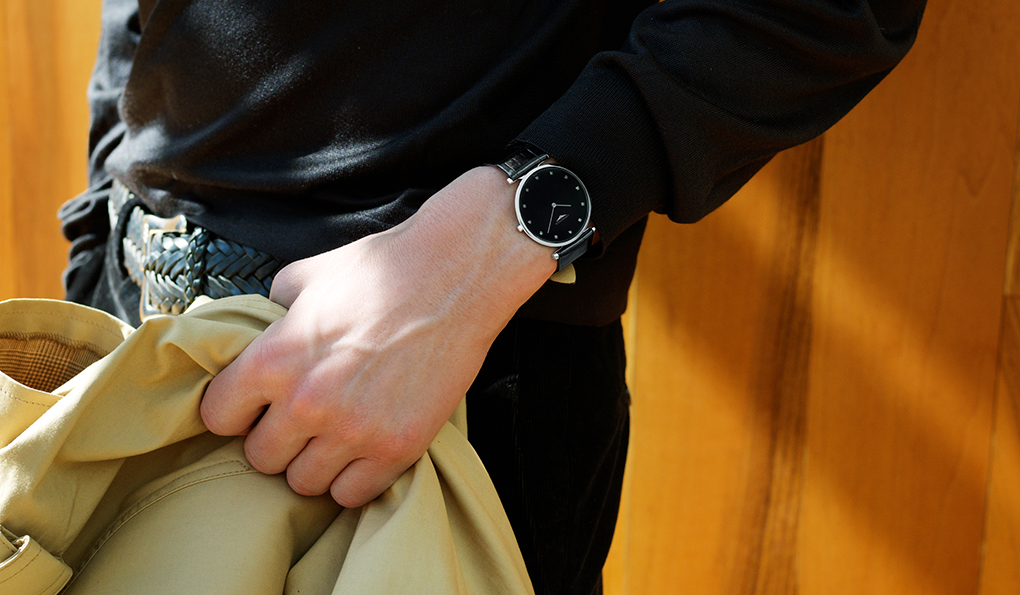 ロンジンが誇る薄型時計「ラ グラン クラシック ドゥ ロンジン」は、1992年に誕生。そのフォルムは、名コレクションとして名高い「アガシ」から受け継がれたものだ。クオーツモデルは僅か4.40mm、自動巻きでも7.05mmの薄さを実現し、繊細かつシャープなシルエットを具現している。文字盤では多彩なバリエーションを誇り、なかにはダイヤモンドをセットしたプレシャスなモデルまで登場している。今回紹介する3つのカテゴリーの中で一番エレガントなこのコレクションには、軽快でありながら、どこかハードボイルドなセクシーさを持つトレンチコートを合わせたい。