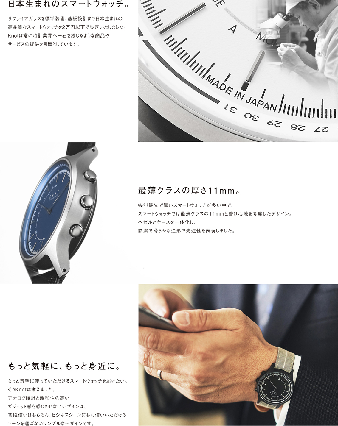 デザインにも品質にも優れたMade in Japanの腕時計で、世界の人々や文化を結び付けたい――そんな想いから2014年に誕生したのがカスタムオーダーできるリストウェアブランド「Maker’s Watch Knot」。そのKnotが今秋、ブランド初となる、“日本製”スマートウォッチを発表した。