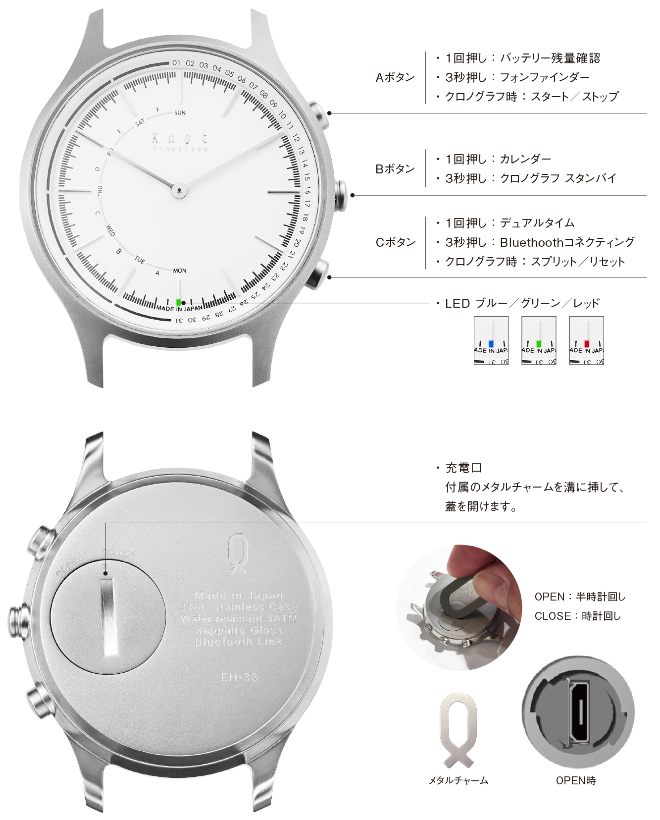 そこでKnotが考えたのが「Electric Hybrid Series EH-38」である。開発のポイントは“心のハードルを感じさせない、もっと気軽に使えるスマートウォッチ”だ。