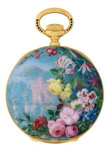 ポーランド出身の物理学者、化学者であるマリー・キュリーに贈られたのは、美しい花園をモチーフにしたペンダント・ウォッチであった。