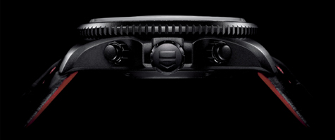 そして、このグランドカレラ クロノグラフRS2 限定モデルは、2008年4月に開催されたバーゼルワールドに先行して発表されたグランドカレラ・コレクションのニューモデル。ブラックを基調にしながら、随所に鮮烈なレッドを配すことで疾走感溢れるデザインを実現。