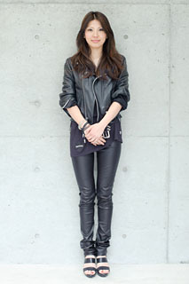 いまのファッションの傾向だと、全身をクロムハーツでも格好いいなと思いました。自分のからだに馴染んできたライダースジャケットに新作のTシャツワンピース、それにスキニーレザーパンツを合わせました。銀座店で大人の女性への提案をしていけたらと思います。