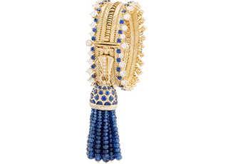 『ウルフ・オブ・ウォールストリート』のナオミ役で一躍スターの仲間入りを果たしたマーゴット・ロビー。彼女の胸元には、贅沢なヴァン クリーフ アンド アーペスのネックレスが輝いていた。「ジップ アンティーク コロンビン」は、その名のとおり、ジッパーとして開閉ができる仕掛けを持ち、形を変えてブレスレットとしても着用できるジュエラーの意匠が詰まった逸品。ジップエンドにはサファイヤがたっぷりと飾られている。