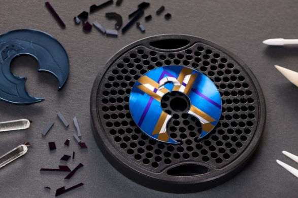 ブルーの色味を帯びたケースに金メッキの「X」をあしらったタイプと、パープルブルーを背景にシルバーの「X」をあしらったタイプの2種が用意され、どちらも他に類を見ない輝きの光を反射する見事な作品へと仕上げられた。