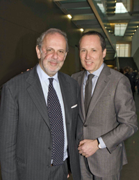 エルメネジルド ゼニア グループCEOのエルメネジルド・ゼニア(右)と、ジラール・ペルゴおよびジャンリシャールブランドを率いるソーウインドグループのオーナー兼CEOルイジ(ジーノ)・マカルーソ(左)。
