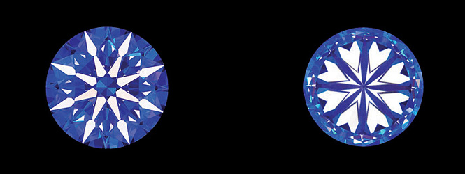 バックス&ストラウスの時計にほどこされた、「アイデアルカット」により浮かび上がる「ハート&アロー」