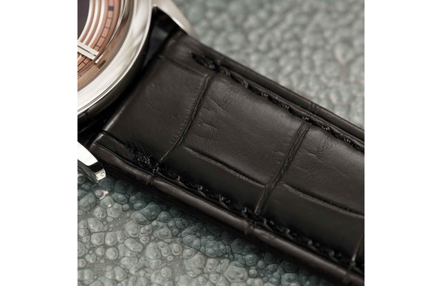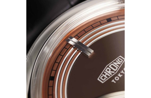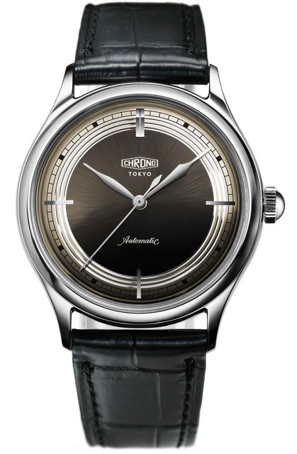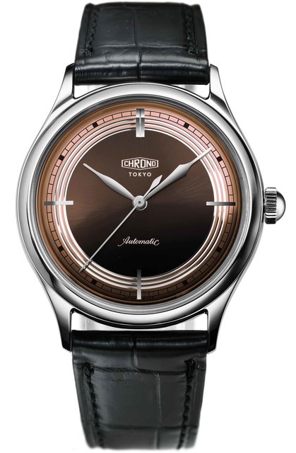 ツートーン仕上げの文字盤がデザインの特徴で、スティールグレーとブロンズの2色を展開。塗装の下にはサンレイ模様が施され、光の当たる向きにより繊細な表情を見せる。またストラップは「CHRONO TOKYO」シリーズで初のクロコダイルが採用された。