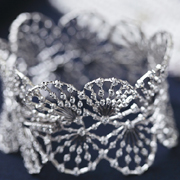 今春発表された「SPRING GRAND DISPLAY 2009 OF MIKIMOTO」のテーマは「ビューティフルメモリーズ」。海や花、そして光など生命の美しさを想起させるジュエリーの数々だが、関谷晶子さんは自身が手がけた写真のブレスレットなど春めいたユニークピースを見せてくれた。このコレクションを制作するために、描いたデザイン画はおよそ100枚近く。それは至極あたりまえのことだという。