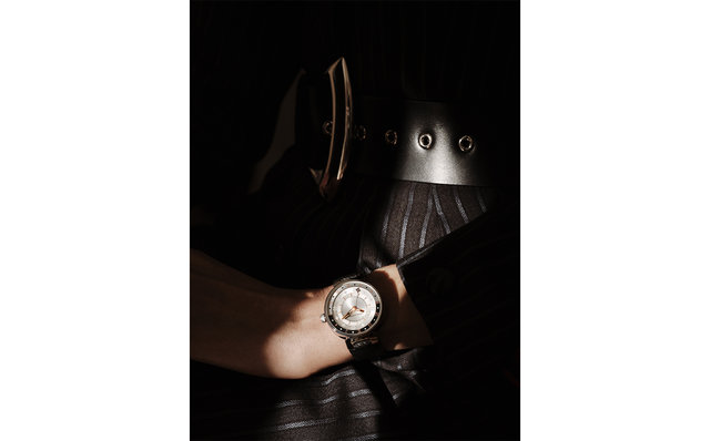 また通常の時針と分針が示すローカルタイムに加えて、24時間表示方式のセカンドタイムはサンレイブラッシュ仕上げまたはショットブラスト仕上げの魅力的な文字盤の上にクリアに表示される。さらに、デイ ナイトインジケータと連動するツートーンのフランジによって視認性も高められている。