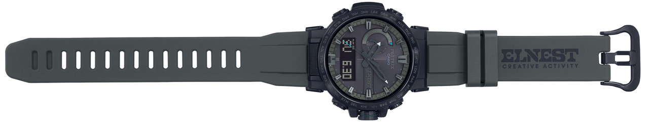 カシオのアウトドアウオッチ「PRO TREK(プロトレック)」が「ELNEST CREATIVE ACTIVITY(エルネスト クリエイティブ アクティビティ)」とコラボレート。「PRW-60ECA-1AJR」を10月5日(土)にリリースした。