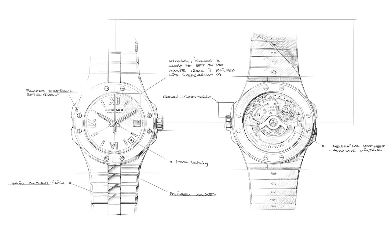 現代的で端正、かつ個性的でスポーツシックな新作コレクション「アルパイン イーグル」は、ショパールの共同社長を務めるカール-フリードリッヒ・ショイフレ氏が、1980年にアトリエ初のステンレススチールで製造した時計「サンモリッツ」を現代的に再解釈したモデルだ。