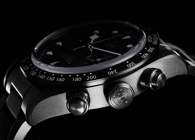 チューダーから、フルブラックに身を包んだクロノグラフが誕生しました。ケース、ベゼル、ブレスレットすべてをNASAが開発した物理蒸着、ブラックPVD(Physical Vapour Deposition)でコーティングしたマッシブなモデルです。その特徴は、モードにもカジュアルにも、ビジネススーツにも合わせられる全方位カバー型の万能ルックス。これ1本あればどこに出ても恥ずかしくないアイキャッチとなることはもちろん、数あるブラックウオッチのなかから、この1本を選ぶ意味づけもあるのです。